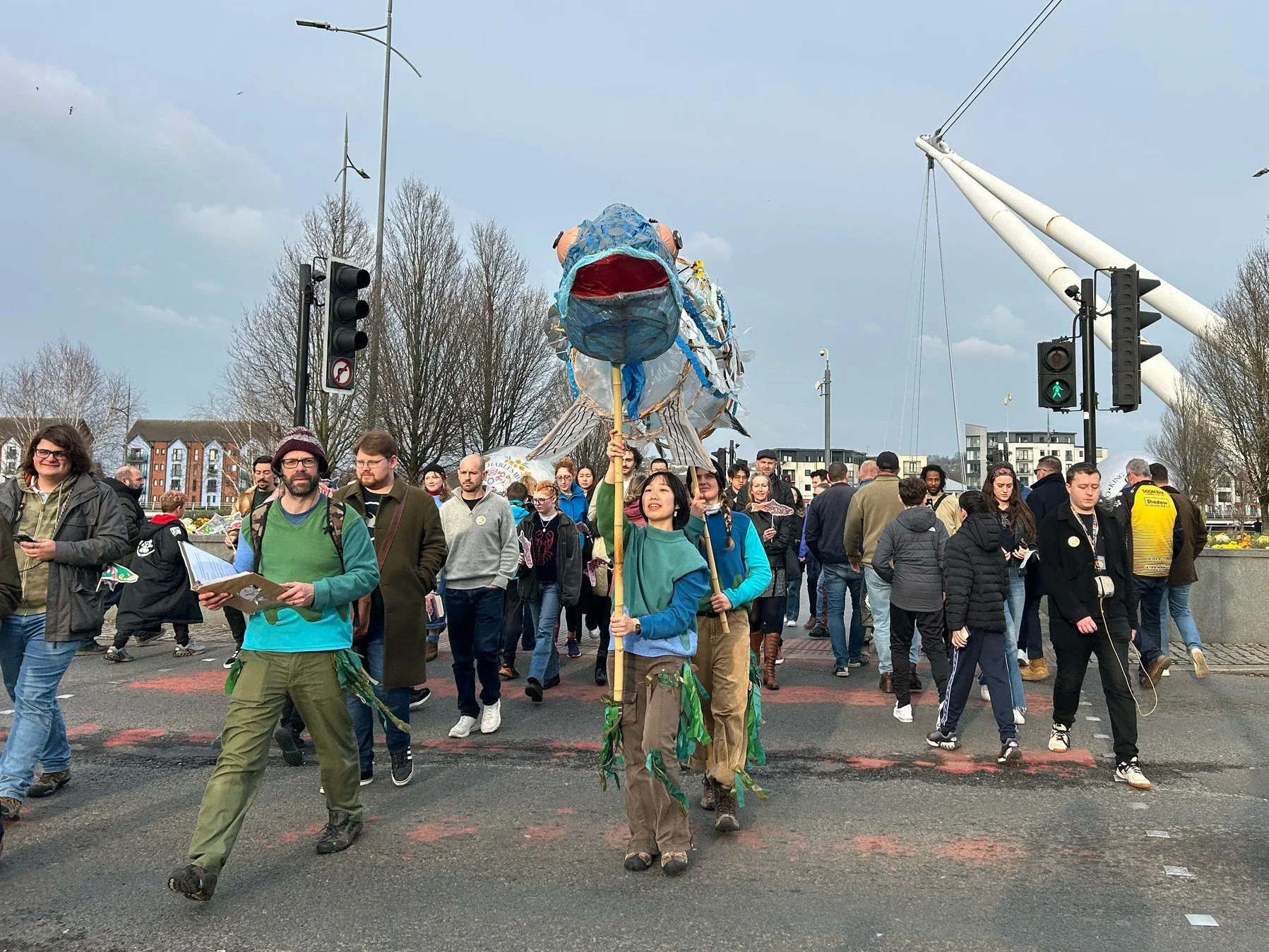 A devised site-specific, to raise awareness of the dwindling Salmon population of the River Usk, inspired by the story of the Salmon Llyn Llyw of the Maginogion.